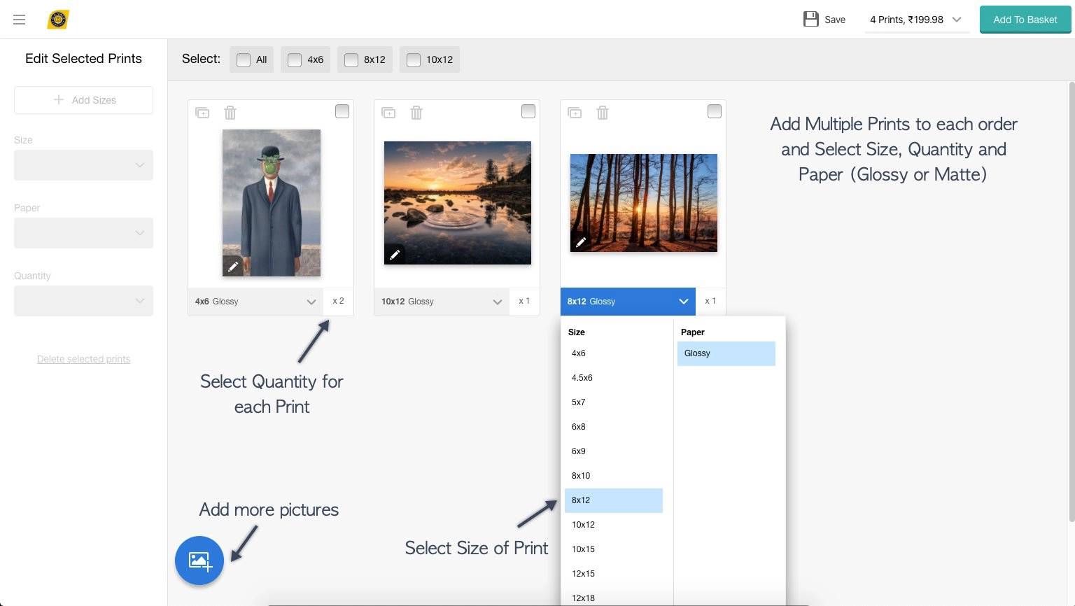 Whether it is Glossy or Matte, we use the best quality photo paper for printing Photo Prints or Enlargements.