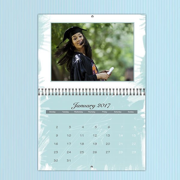 A spiral-bound wall hanging calendar which can be opened up to show a Photo and the calendar for a month. The calendar can be hung on a wall and comes with a pre-punched hole for this purpose. The size of the calendar is 8 x 11 inches. Great for home or office use.